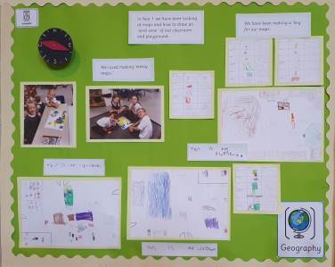 In the Early Years Geography is taught mainly through a child-initiated approach. Staff have a clear understanding of the next steps in the child's learning journey, and develop the children's knowledge, understanding and vocabulary, through carefully thought out interactions and sustained shared thinking in play-based activities. Children also have regular 'welly walks' in the school grounds, through which they are able to explore their immediate environment, and how this changes through the seasons. In addition, they experience walks in the local area, and a trip further afield to a contrasting environment in the summer term. Children are also exposed to contrasting locations through our Power of Reading texts, and are encouraged to create maps based on journeys and locations within these texts.