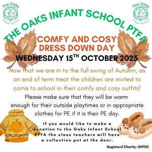 Follow us on Facebook - 'The Oaks Infant School - PTA' If you are a parent of a child at The Oaks you can join our PTFA Facebook Group. We will need to confirm your child attends the school before approving membership.